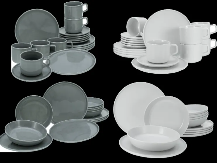 Dit servies is vaatwasser- en magnetronbestendig en ontworpen voor dagelijks gebruik. Dankzij de platte vormgeving is het ook ideaal voor het serveren van moderne gerechten.