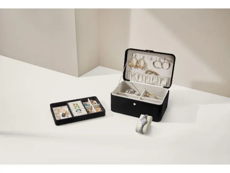 Bewaar je sieraden netjes en overzichtelijk. Deze sieradendoos combineert stijl met praktische opbergruimte en is ideaal voor thuis of onderweg.