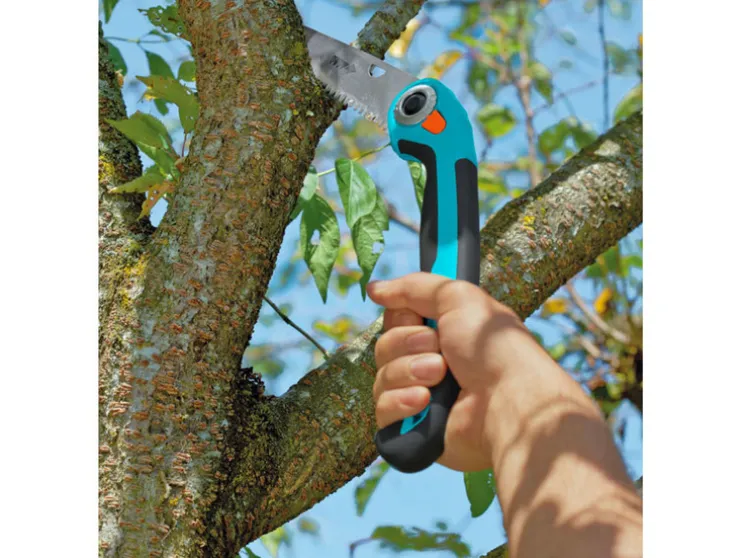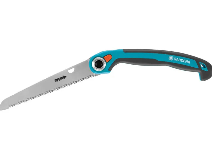 De handige snoeizaag van GARDENA met een bruikbare zaaglengte van 200 mm is geschikt voor het doorsnijden van takken. De snoeizaag heeft een hardverchroomd zaagblad. Dit geeft het een lange levensduur en beschermt het tegen corrosie. De pulsgeharde vertanding met drievoudige slijping zorgen voor nauwkeurig snijden met een glad snijresultaat. Dit leidt tot een hoge zaagprestatie met weinig inspanning. De licht gebogen handgreepvorm is ontworpen voor ergonomie, om de tuinzaag comfortabel vast te houden. Ingebouwde zachte delen en de slipstop aan het einde van de handgreep zorgen voor een veilige hantering met stevige grip. Het zaagblad kan in 3 verschillende standen worden vergrendeld, wat een schoon en nauwkeurig zagen van de takken in schuine standen mogelijk maakt. Na de werkzaamheden verdwijnt de zaag snel en gemakkelijk, door het veilig in de gevormde handgreep in te vouwen. Dit vergemakkelijkt het transport van de snoeizaag en met de ooghanger kan deze ruimtebesparend worden opgeborgen.