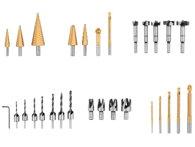 | Inhoud | Getrapte borenset: 3x stapelfrees, maten: 4-12 mm / 4-20 mm / 4-32 mm Multifunctionele borenset: 1x stapelfrees, maat 4-12 mm; 1x blikkensnijder, maat 8 – 20 mm; 1x freesboor, maat 6 mm; 1x zinkboor, maat 12,4 mm Houtborenset: 5x houtboor, maten: 15 mm / 20 mm / 25 mm / 30 mm / 35 mm Houtboren met verzinkers: 7x houtboor met zinkbooropzetstuk, maten: 3 mm / 3,5 mm / 4 mm / 4,5 mm / 5 mm / 5,5 mm / 6 mm Tapborenset: 4x houten deuvel- en penboren schuin, maten: 6 mm / 10 mm / 13 mm / 16 mm Freesborenset: 5x freesboren, maten: 3 mm / 4 mm / 5 mm / 6 mm / 8 mm |