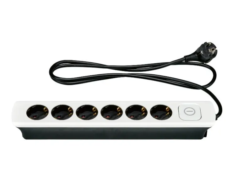 Design stekkerdoos met 6 stopcontacten. Praktisch en stijlvol voor thuis of kantoor.