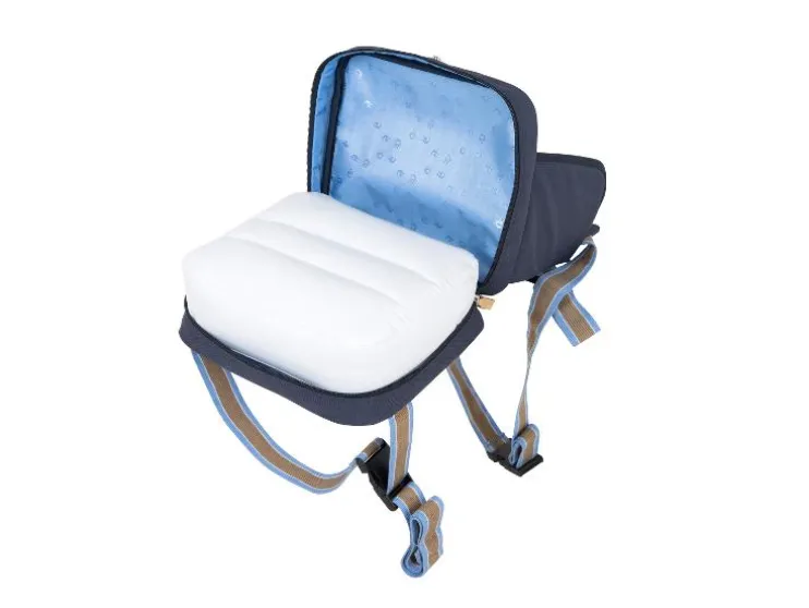 - Het zitvlak bestaat uit een opblaasbaar kussen zodat de baby hoger en zachter zit