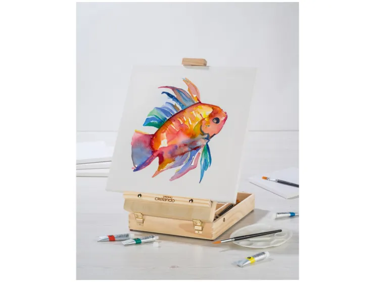 - Ruime transportkoffer met geïntegreerde schildersezel