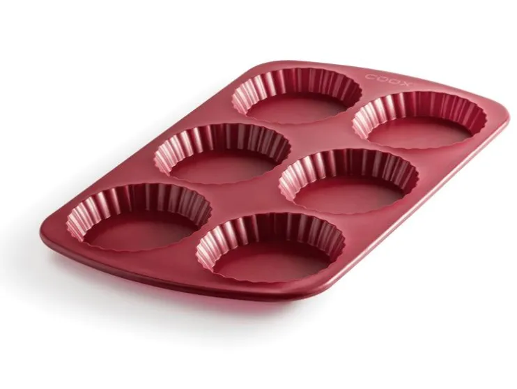 Bak mini-taartjes, mini-quiches, koekjes en meer in een handomdraai met de 6-delige tartelettevorm van coox, gemaakt van hoogwaardig, volgens EU-norm op voedselveiligheid getest siliconen. De vormen zijn opvouwbaar, wat enerzijds zorgt voor ruimtebesparende opslag en anderzijds het losmaken van het gebak vergemakkelijkt.