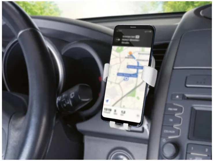 - Flexibele smartphonehouder voor eenvoudige bevestiging aan de ventilatieopeningen