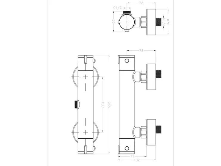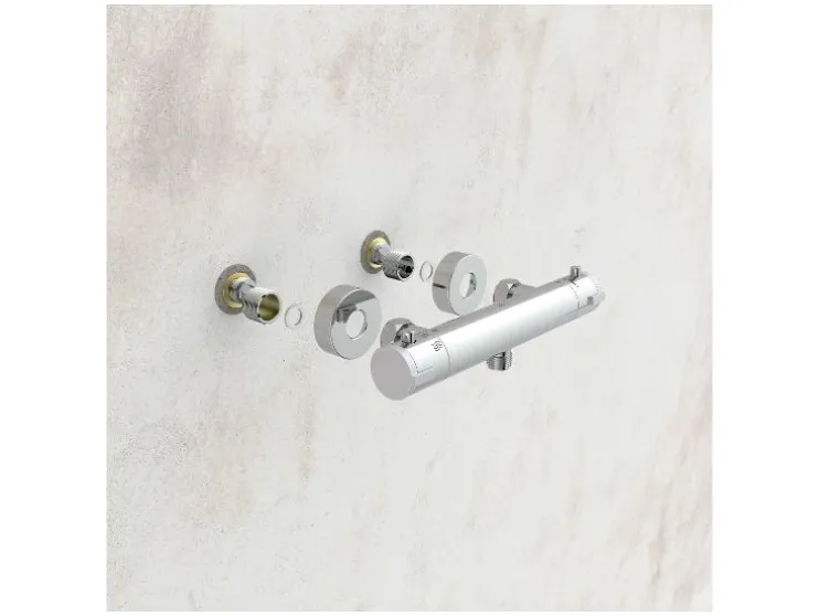 De thermostatische douchekraan »CLAUDIO« is gemaakt van hoogwaardig messing en heeft verchroomde kunststofgrepen, die voor een lange levensduur zorgen. De doucheaansluiting is standaard ½” (Ø ca. 1,9 cm) en de afmetingen bedragen ca. 268 x 39 mm (L x H). Het totale gewicht bedraagt 1,1 kg.