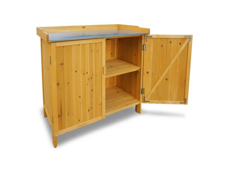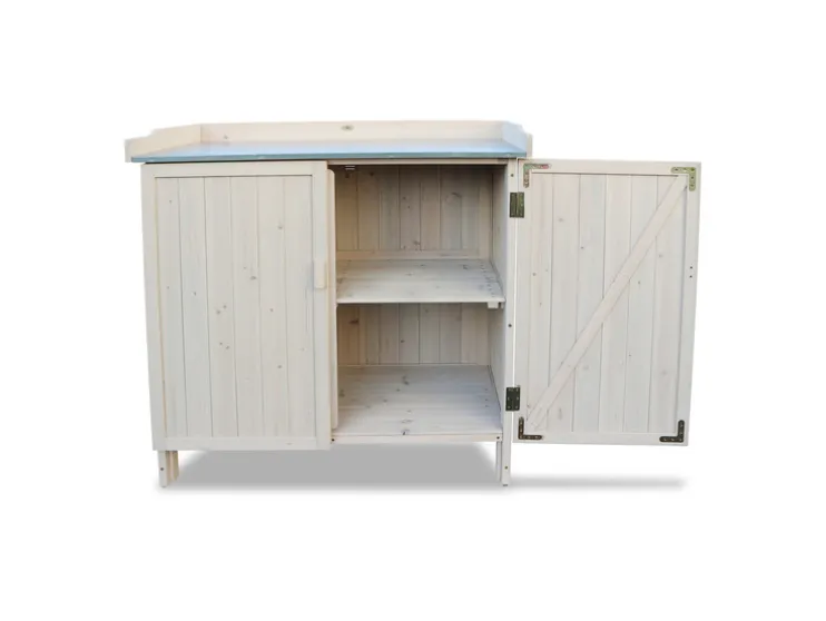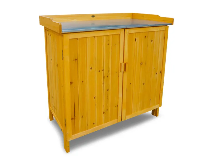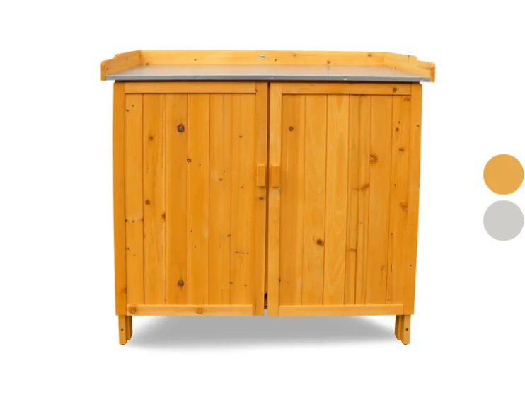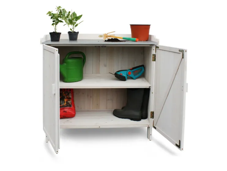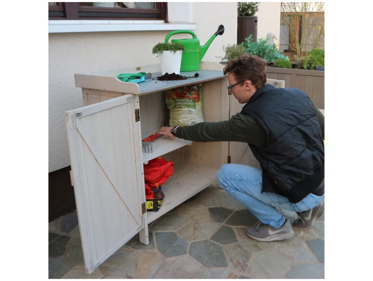 - De tuintafel met onderkast is ideaal om werkruimte en opslag te combineren