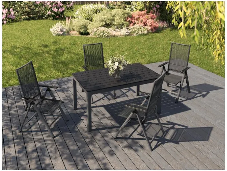 LIVARNO home Tuinset Miami 5-delig – Standaardtafel & 4 verstelbare tuinstoelen