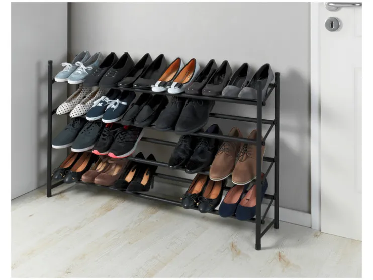 Dankzij de telescoopfunctie (uittrekbaar van 62 tot 115 cm) biedt de open schoenenkast royale en overzichtelijke opbergruimte voor maximaal 24 paar schoenen op vier planken. De rekken kunnen naar wens worden uitgebreid en er kunnen meerdere rekken op elkaar worden gestapeld.