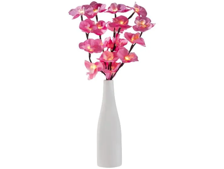 - Orchideebloesem: 20 textielbloesems met op batterijen werkende LED-lampjes