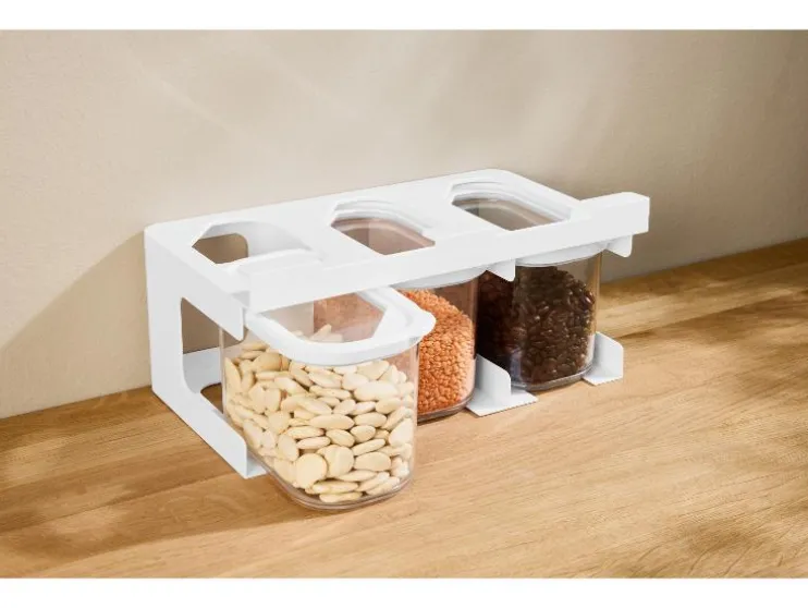De SILVERCREST® vershoudbakjes met rek zijn ideaal voor kleine keukens. Hang ze eenvoudig onder een plank of kast en bewaar je droge levensmiddelen netjes en overzichtelijk.