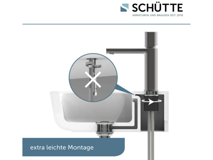- Inclusief 11/4“ (Ø ca. 4 cm) pop up-excentrisch beslag (afvoergarnituur) – gemakkelijk per vingerdruk de afvoer openen en sluiten