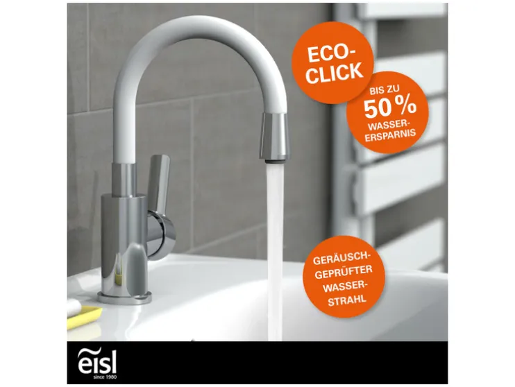 - Met de Eco-Click functie – tweestaps bedieningshendel – kan de wateruitloop worden gereduceerd