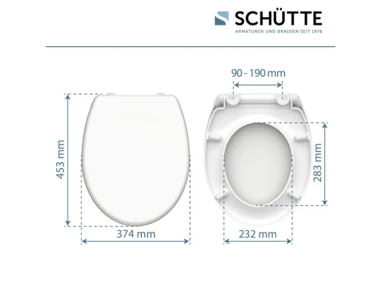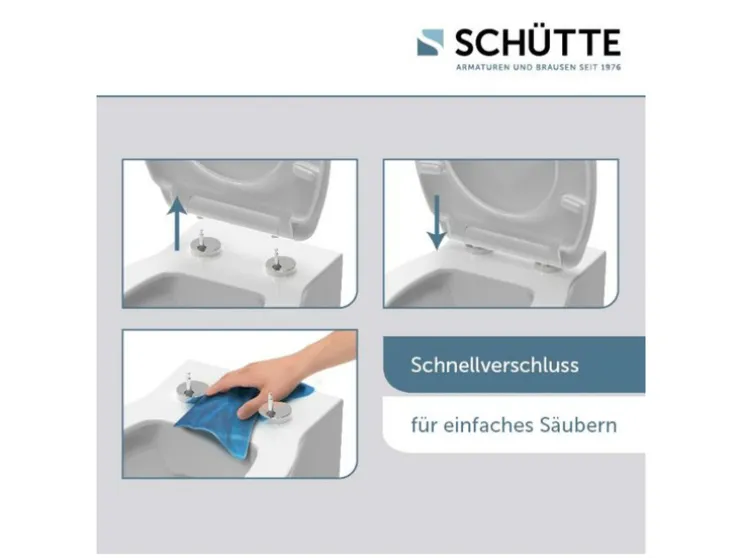 - Hoogwaardige SCHUTTE toiletdeksel met soft-close-mechanisme (deksel en zitting sluiten zacht en geruisloos)