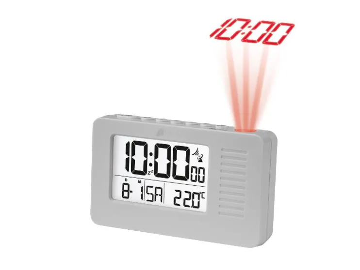| Functies: | Projecteert op knopdruk naar keuze de tijd of de kamertemperatuur op het plafond |