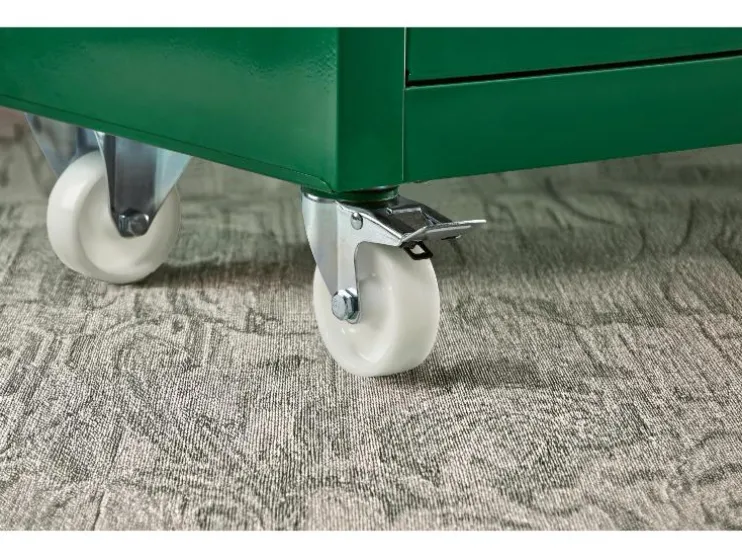 - Soepel lopende wielen – geschikt voor robuuste vloeren zoals linoleum, industriële vloeren en tapijt
