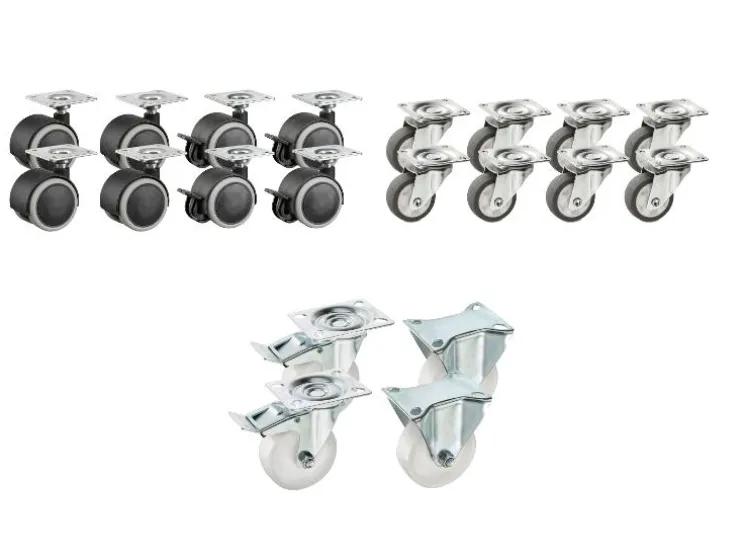 | Afmetingen: | Set zwenkwielen 8-delig: ca. Ø 30 mm Set meubelwielen 8-delig: ca. Ø 40 mm Set transportwielen 4-delig: ca. Ø 75 mm |
