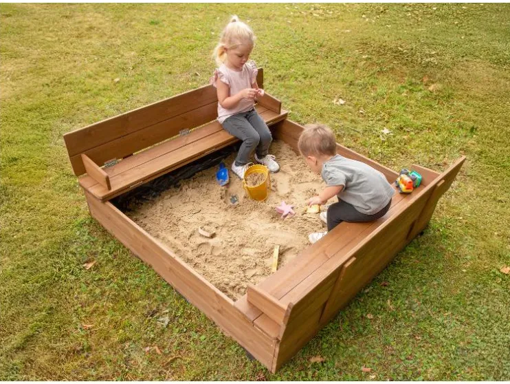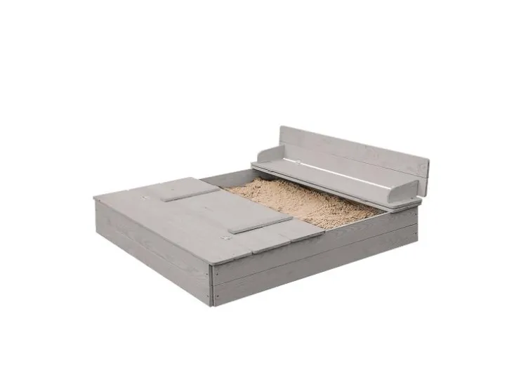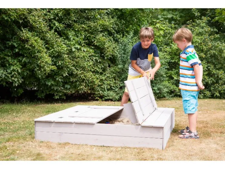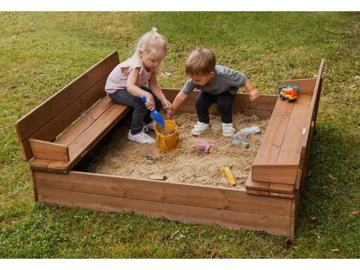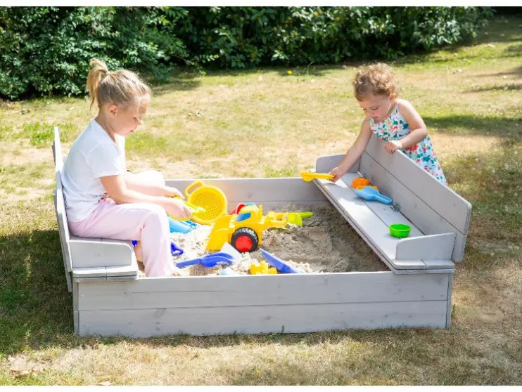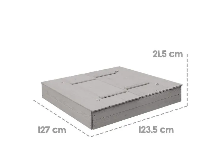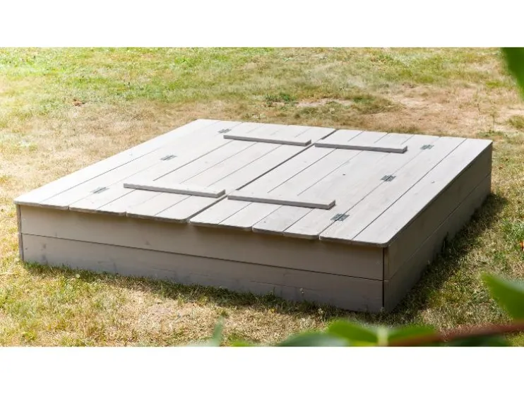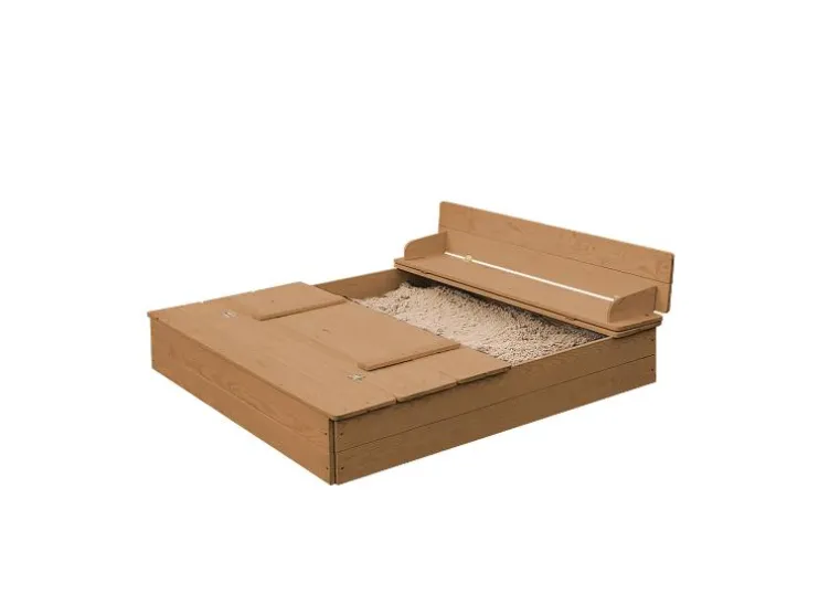 Ontdek de robuuste roba zandbak, gemaakt van weerbestendig en gelakt massief hout en zorgt voor langdurig speelplezier in de buitenlucht. Het absolute hoogtepunt is het slimme deksel: met een paar handgrepen verander je het in twee praktische zitbanken, die je kind comfortabel spelen mogelijk maken. Na het graven klap je het deksel gewoon weer dicht, zodat het zand schoon en droog blijft. Dankzij de kindvriendelijke, afgeronde randen en de stabiele constructie is de veiligheid gewaarborgd. De montage is dankzij de begrijpelijke handleiding kinderspel en snel geklaard. Zo staat er niets meer in de weg voor het bouwen van zandkastelen!