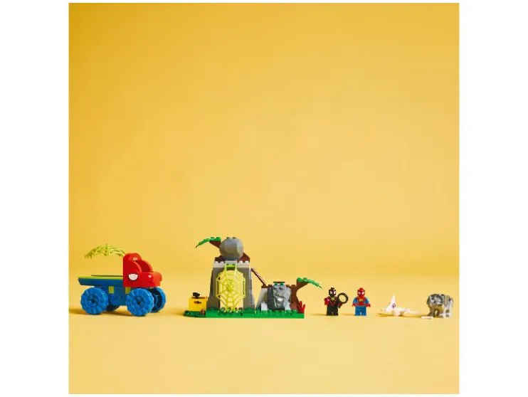- Inclusief minifiguren Spidey en Miles “Spin” Morales, plus 2 bouwbare dino’s: Ghost-Spider als Pterodactylus en Rhino als Triceratops