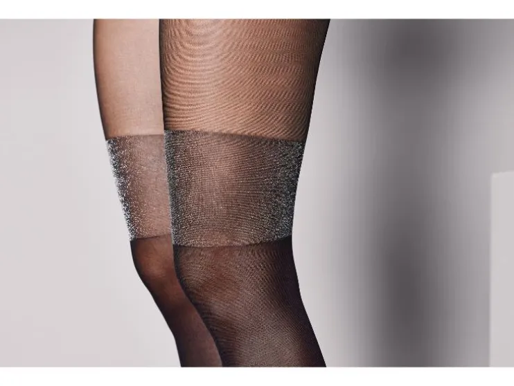 | Materiaal: | zwart/stippen: Zwart: 90 % polyamide, 10 % elastaan (LYCRA®); Overknee: 91 % polyamide, 8 % elastaan (LYCRA®), 1 % gemetalliseerde vezels zwart/zilver: Zwart: 90 % polyamide, 10 % elastaan (LYCRA®); Overknee: 85 % polyamide, 9 % elastaan (LYCRA®), 6 % gemetalliseerde vezels zwart/strepen: Zwart: 90 % polyamide, 10 % elastaan (LYCRA®); Overknee: 89 % polyamide, 8 % elastaan (LYCRA®), 3 % gemetalliseerde vezels |
