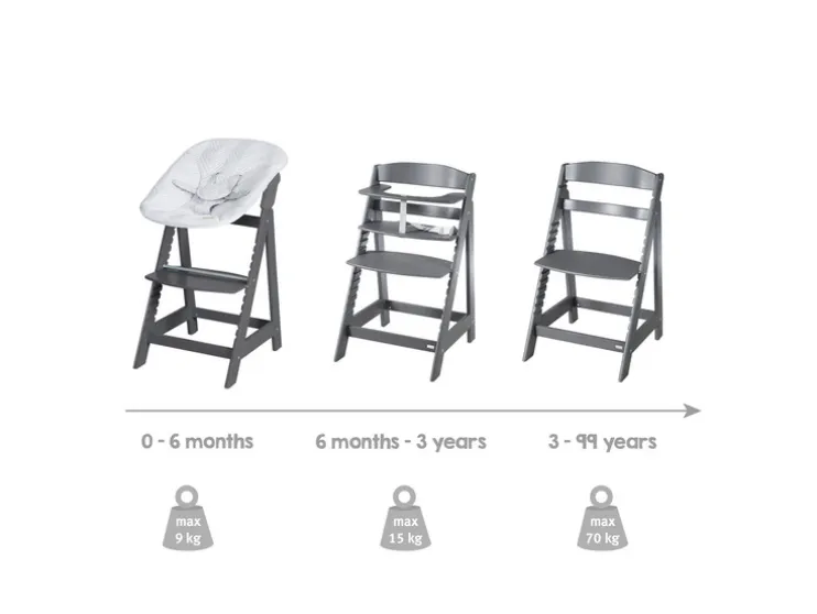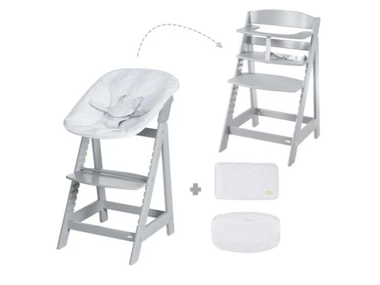 Laat je kindje vanaf dag één veilig en comfortabel mee-eten. De roba Born Up Zickzack groeit met je kind mee en biedt slimme functies voor elke fase.