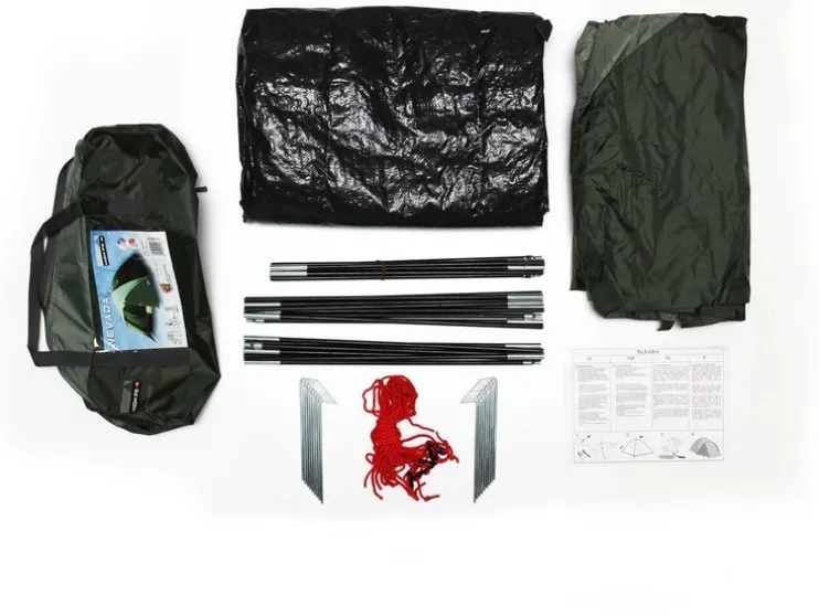 Deze compacte koepeltent met voortent biedt ruimte voor overnachting én opslag. Met 1,24 m² aan opbergruimte is er genoeg plek voor je bagage. De tent is voorzien van continue ventilatie, een ingang met insectennet en 3 binnenzakken voor kleine spullen. Dankzij de waterkolom van 2000 mm en afgedichte naden blijf je droog bij regen. Inclusief draagtas, haringen en scheerlijnen, klaar voor vertrek!