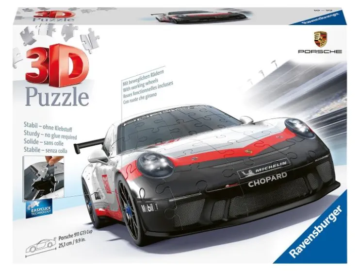 Beleef de kracht van een echte racewagen met deze Ravensburger 3D Puzzel van de Porsche 911 GT3 Cup. Bouw jouw eigen sporticoon en geniet van een unieke puzzelervaring.