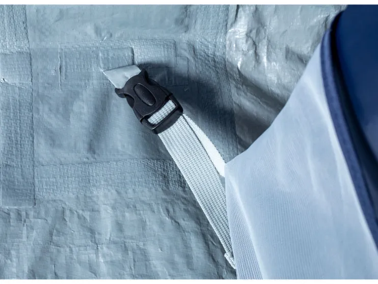 De tent is rondom voorzien van een vast kuipgrondzeil dat volledig is vastgenaaid aan de buitentent. Dit voorkomt dat water, vuil of insecten naar binnen komen. Je blijft dus droog en schoon, ook bij slecht weer.