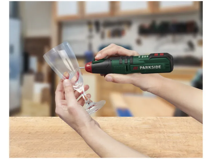 - Voor in de handel verkrijgbare lijmstiften met Ø 7 mm (bijv. van Parkside)