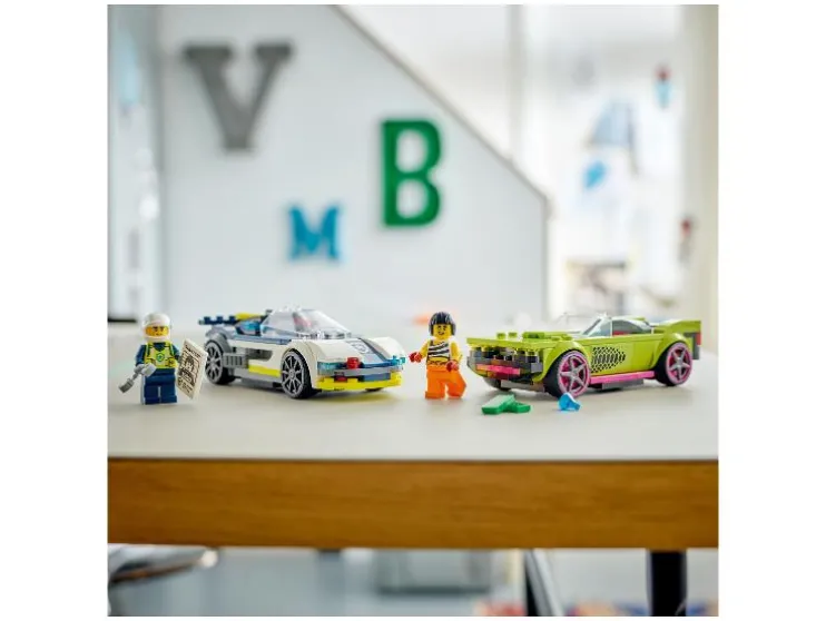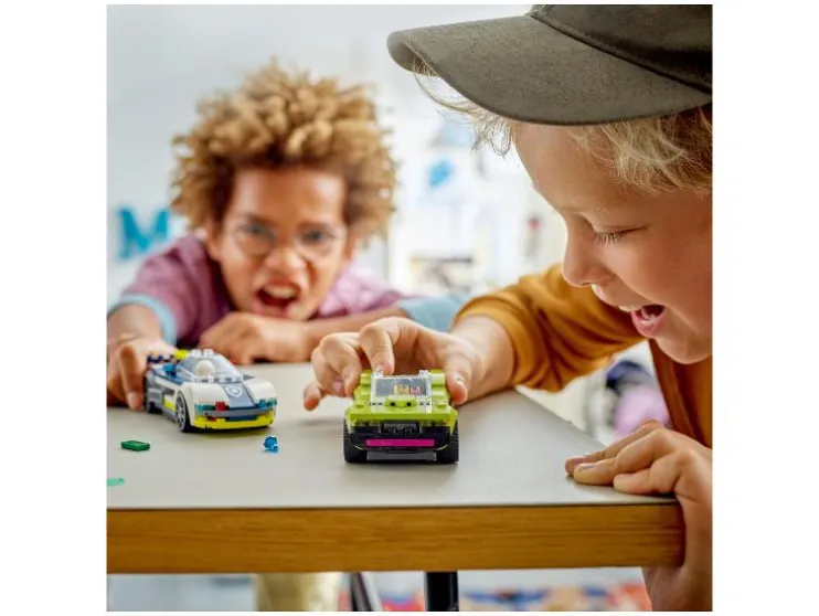Beleef actie en avontuur met deze LEGO® City set. Bouw een politieauto en een vluchtauto en speel spannende achtervolgingsverhalen na.