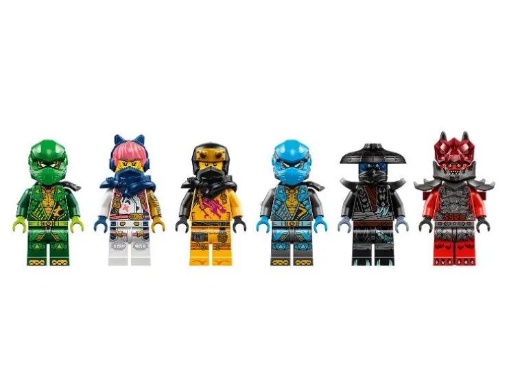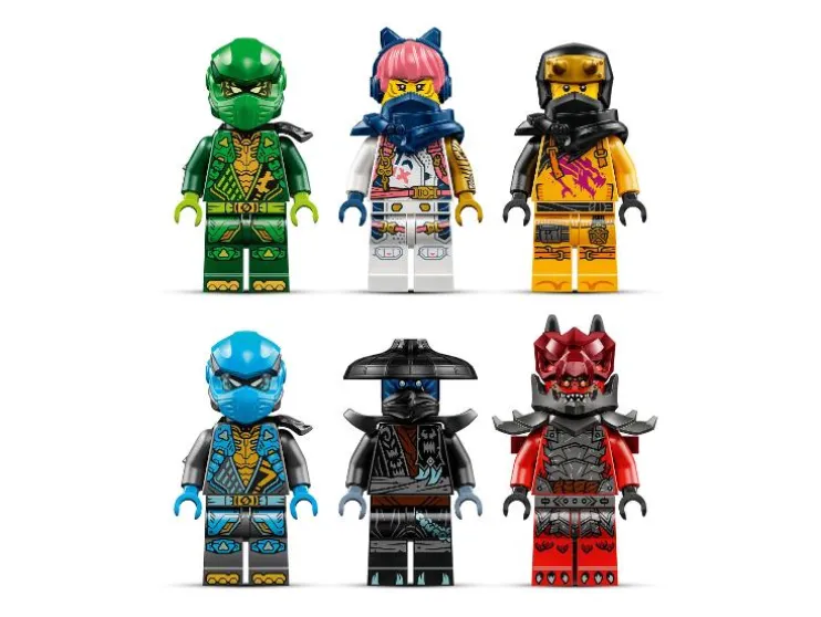- Zes minifiguren: Lloyd, Nya, Arin en Sora als ninjahelden en Nokt en Tyr als schurken