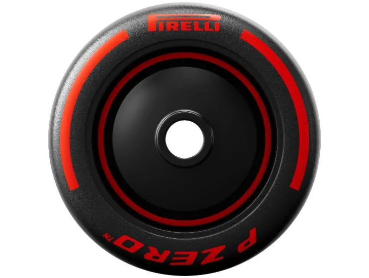 - Authentiek ontwerp met halo-beugel, achtervleugel, sponsorstickers en brede achterbanden met Pirelli-opdruk