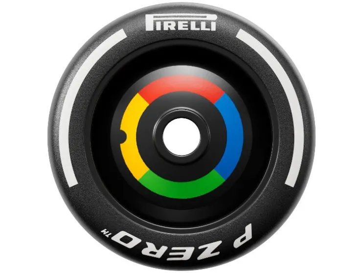 - Authentiek ontwerp met halo-beugel, achtervleugel, sponsorstickers en brede achterbanden met Pirelli-opdruk