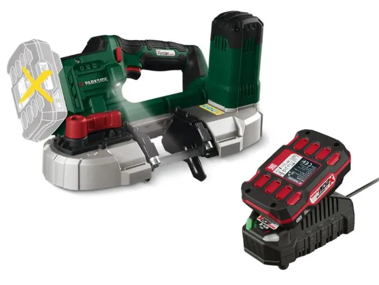 Set: 1x bandzaag, 1x accu 2 Ah, 1x acculader 2,4 A