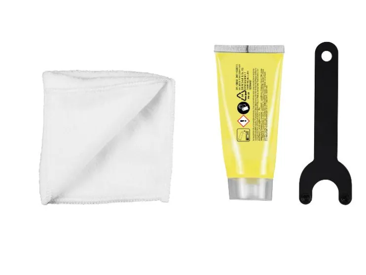Meegeleverde accessoires: 1 extra handgreep (voorgemonteerd), 1 diepte-aanslag (voorgemonteerd), 1 schroevendraaier voor behuizingafdekking, 1 tube smeervet (50 g), 1 doek