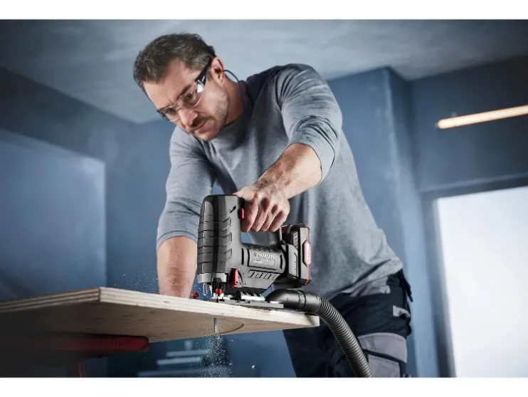 - Snelle zaagvoortgang door 3-traps instelbare pendelslag