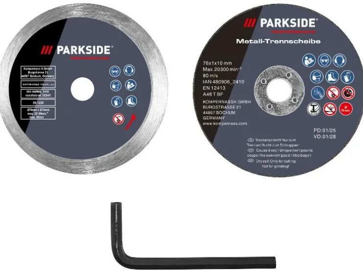 | Toebehoren | 1x inbussleutel, 1x slijpschijf (Ø 76 mm), 1x diamantslijpschijf (Ø 76 mm) |