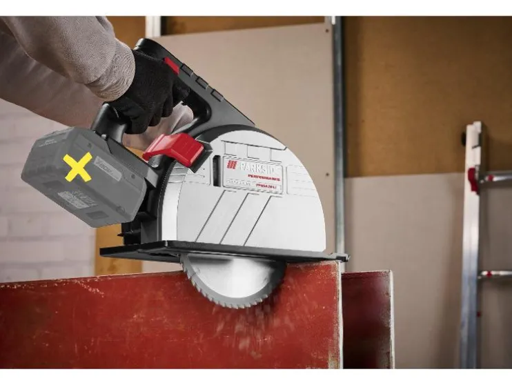 - Voor gangbare 190 mm metaalzaagbladen met 30 mm zaagbladboring en een max. bladdikte van 1,4 mm (bijv. van PARKSIDE)
