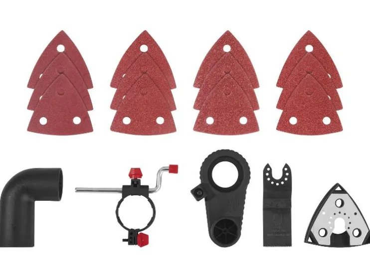 | Toebehoren: | 1x HCS-dompelzaagblad voor hout, gips en kunststof, 1x delta-schuurplaat, 12x schuurbladen voor hout (elk 3 korrel 60/80/120/240), 1x stofafzuigadapter (2-delig), 1x diepte-aanslag |