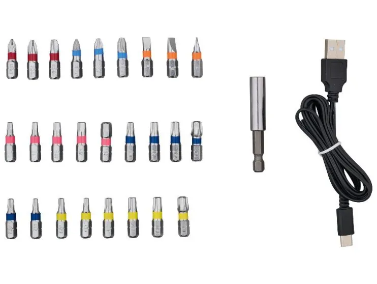 | Meegeleverde accessoires: | 26 bits (25 mm), 1 bitverlenging (60 mm), 1 USB-C-oplaadkabel (1,50 m) |