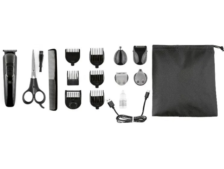 | Leveringsomvang: | Haar- en baardtrimmer, schaar, scheerolie, reinigingsborstel, opbergtas, kam, USB-A-naar-USB-C-oplaadkabel, diverse opzetstukken |