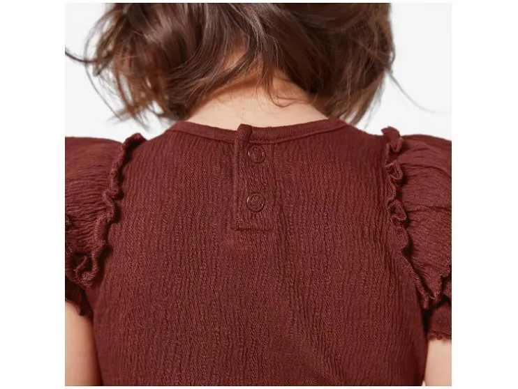| Detail: | Volants aan de mouwen, zacht materiaal met kreukelstructuur, knooping in de nek en kruis voor gemakkelijk aan- en uittrekken |