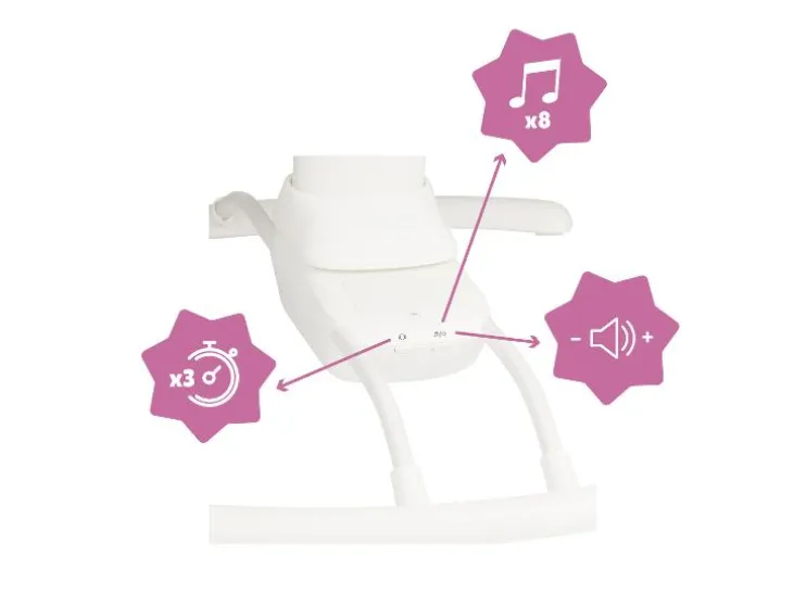 Laat je baby ontspannen in de Badabulle babyschommel. Met natuurlijke wiegbewegingen, muziek en een comfortabele zit is dit de ideale plek voor rust en plezier.