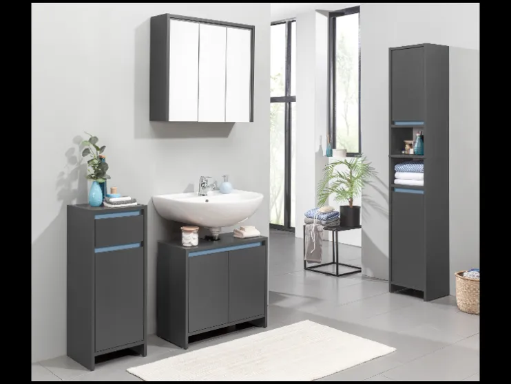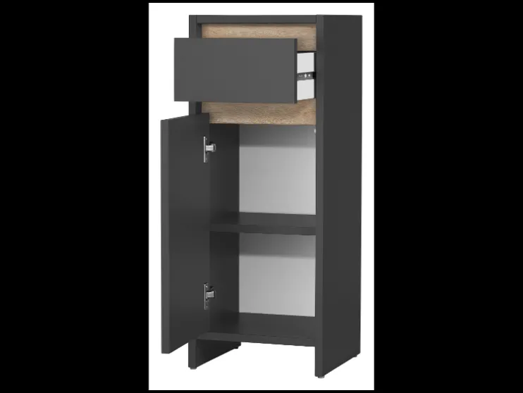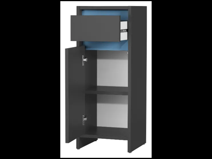 - Tweekleurige verwisselbare fronten naar keuze: wit-eikenlook of antraciet-blauw