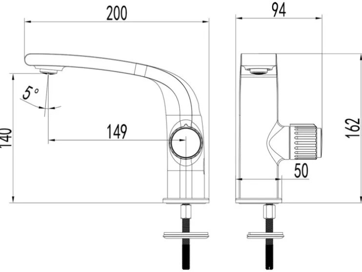 - Wastafelkraan L-vormig: ca. b 20,0 x h 16,2 x d 5,0 cm