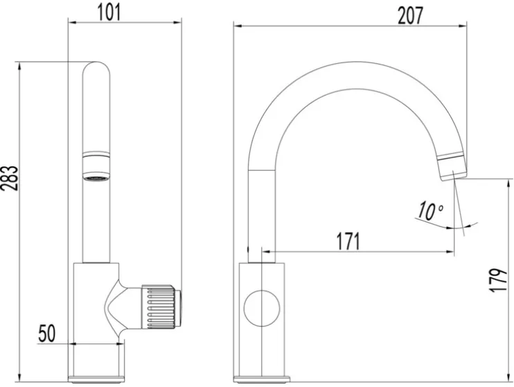 - Wastafelkraan gebogen: ca. b 20,7 x h 28,3 x d 5,0 cm