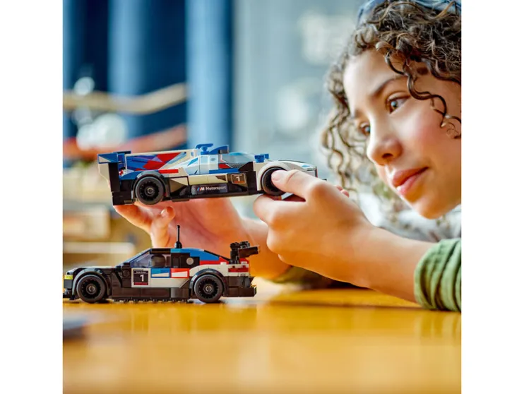 Het BMW M4 GT3 model en de BMW M Hybrid V8 zijn gedetailleerd nagebouwde speelgoedauto’s met authentieke ontwerpdetails van de echte racewagens. Ze beschikken onder andere over uitlaatpijpen, diffusors, achtervleugels, de typische BMW M Motorsport lak en een gedetailleerd interieur. Beide BMW raceauto-speelgoedauto’s hebben een afneembaar dak, zodat kinderen de meegeleverde racecoureur-minifiguren erin kunnen zetten en spannende races kunnen laten rijden. Elk van deze speelgoedauto’s kan ook worden geconstrueerd met behulp van de LEGO Builder app, die jou en je kind meeneemt op een even makkelijk als intuïtief bouwavontuur.