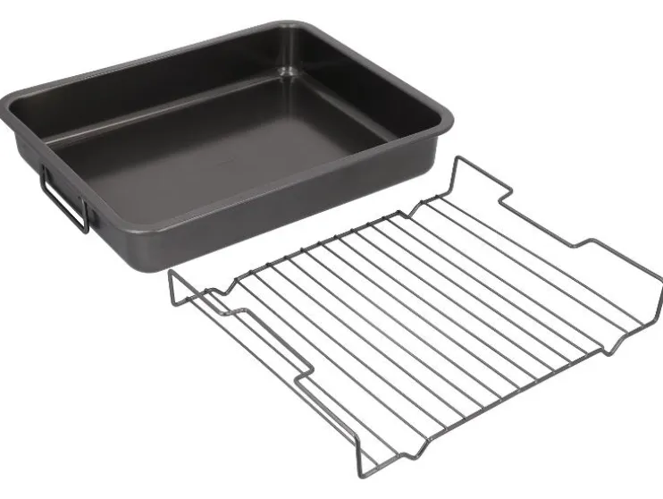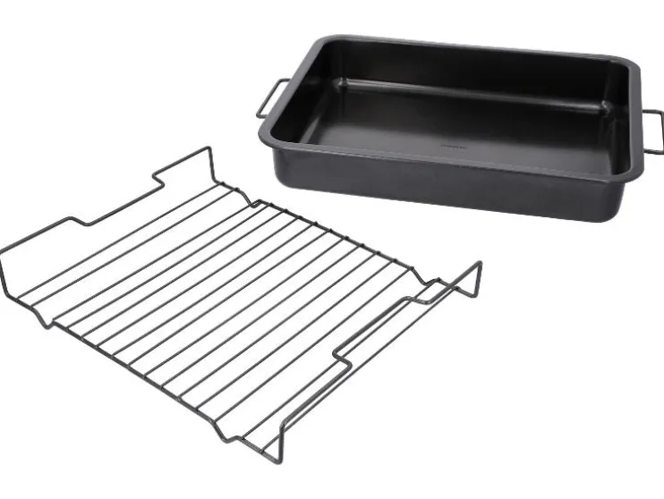 | Afmetingen: | Braadslede: ca. 40 x 32 x 6,5 cm; Rooster: ca. 35 x 27 x 5,8 cm (L x B x H) |