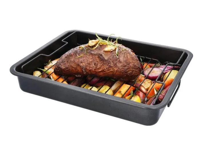 | Materiaal: | Vorm en handgrepen: plaatstaal met antiaanbaklaag Rooster: staal met antiaanbaklaag |