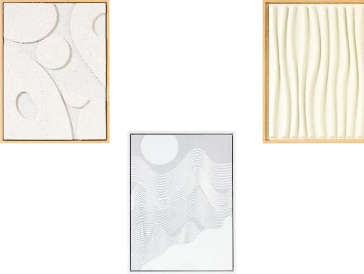 | Materiaal: | Abstract: Polyester-olieverfdoek, zandsteen, kunststof, MDF (gerecycleerd, FSC) Papiertextuur: kunststof, zandsteen, MDF (FSC) Handgeschilderd: Polyester-olieverfdoek, kunststof, MDF (FSC) |